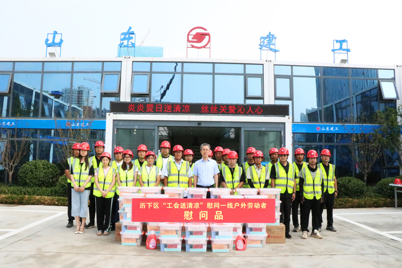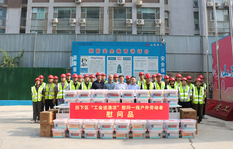 慰問(wèn)項(xiàng)目包括:山東女子學(xué)院科技創(chuàng)新中心建設(shè)項(xiàng)目、濟(jì)鋼片區(qū)韓倉(cāng)河幼兒園工程總承包(EPC)項(xiàng)目、美核電氣(濟(jì)南)核電關(guān)鍵儀控裝備國(guó)產(chǎn)化項(xiàng)目、中大南辦公樓項(xiàng)目、邊莊項(xiàng)目E地塊;德州京津冀生態(tài)產(chǎn)業(yè)園基礎(chǔ)設(shè)施建設(shè)項(xiàng)目、濰坊山東信息職業(yè)技術(shù)學(xué)院濱海校區(qū)實(shí)訓(xùn)樓項(xiàng)目、聊城山東工程技師學(xué)院產(chǎn)教融合實(shí)訓(xùn)中心建設(shè)項(xiàng)目、淄博中德職業(yè)教育產(chǎn)教融合示范基地(二期)項(xiàng)目、淄博火車站北廣場(chǎng)福昇片區(qū)城市更新項(xiàng)目。同時(shí),歷下區(qū)總工會(huì)亦為濟(jì)南中央商務(wù)區(qū)西片區(qū)城市更新項(xiàng)目、鳳凰路壹號(hào)項(xiàng)目提供了"夏送清涼"慰問(wèn)物資。